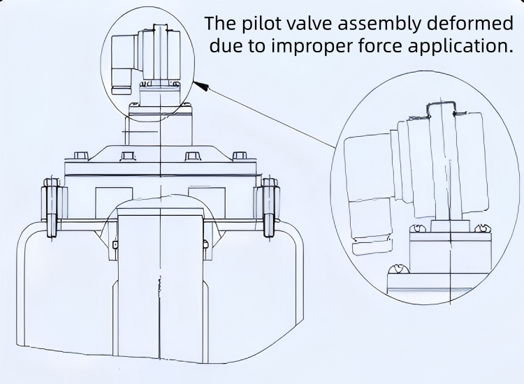 Pärast paigaldamist on õhupaakide, ühendatud äärikute või puhumistorude keevitamine keelatud, et vältida keevisõmbluse pritsmeid või membraanide kahjustusi kõrgel temperatuuril. Käsitsege transportimise või paigaldamise ajal ettevaatlikult, et vältida solenoidklapi juhtsõlme löögikahjustusi, mis võivad deformeerida pooli hülsi, põhjustades liikuva varre kinnikiilumise ja takistades klapi töötamist.